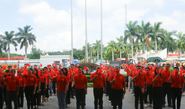盛夏七月,热情似火!德扑之星公司已是党旗飘扬,处处洋溢着喜庆祥和的气氛。当日上午,身穿“中国红”T恤的党员等参会人员有序入场,列队数字“100”庆祝图案,表达对中国共产党的无限热爱。随着主持人一声令下,伴随着激昂雄壮的国歌声,护旗手奋力将鲜艳的五星红旗抛向天空,国旗迎着清晨第一缕阳光冉冉升起,全体人员庄重注视国旗,高唱国歌,脸上写满了骄傲与自豪。